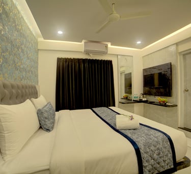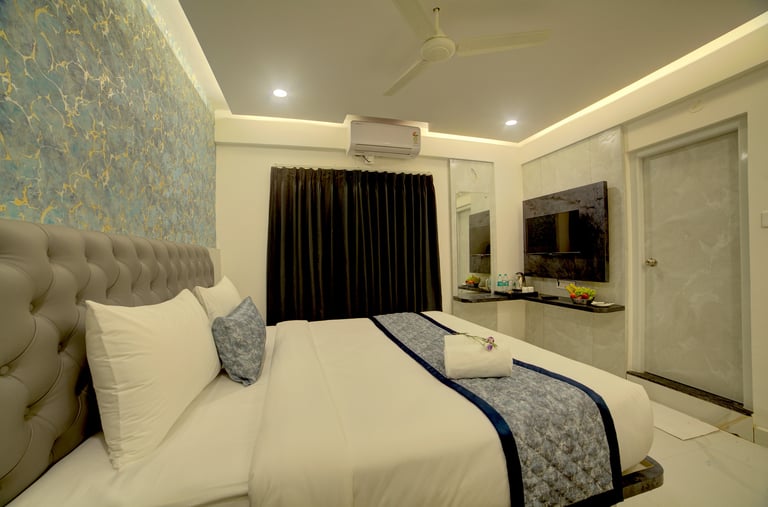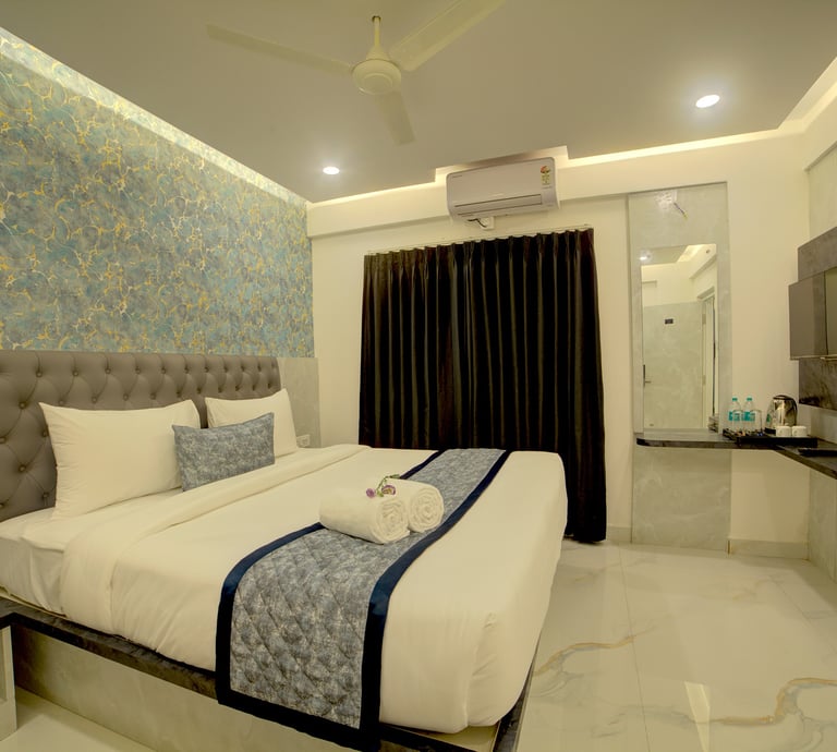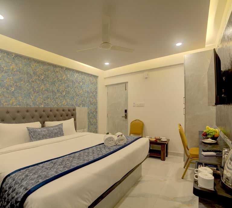 Spacious and stylish, featuring a king-size bed, modern amenities, and a calming view to unwind before your next flight.